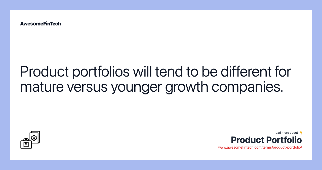 Younger firms with small portfolios are more exposed to the performance of their main products, which can lead to greater operational volatility. More risk and higher growth potential lead to more speculative equity valuation. The various components in a product portfolio often have disparate margins because they have different price dynamics, production costs or marketing demands.