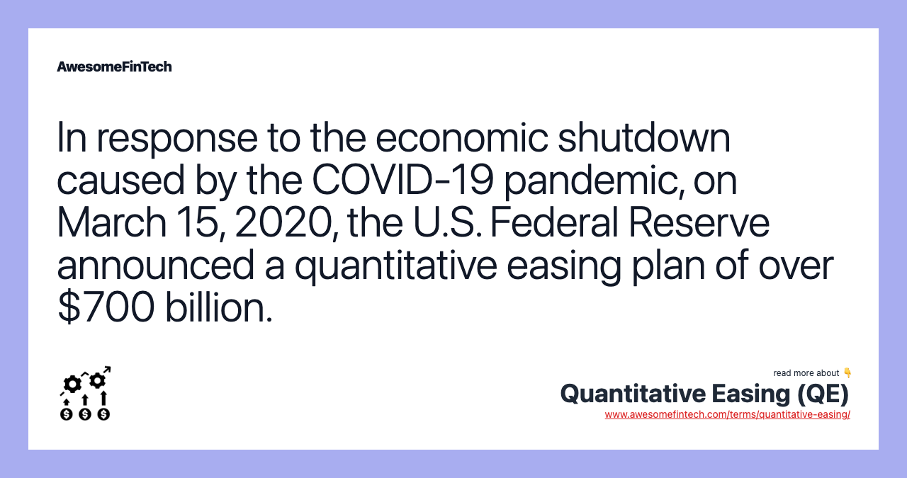 Quantitative easing is a type of monetary policy in which a nation’s central bank tries to increase the liquidity in its financial system, typically by purchasing long-dated government bonds from that nation’s largest banks. Quantitative easing was used in 2001 by the Bank of Japan (BoJ) but has since been adopted by the United States and several other countries. By purchasing these securities from banks, the central bank hopes to stimulate economic growth by empowering the banks to lend or invest more freely.