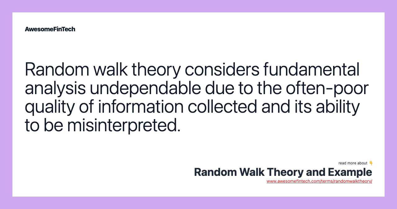 Random walk theory believes it's impossible to outperform the market without assuming additional risk. It considers technical analysis undependable because chartists only buy or sell a security after an established trend has developed. Likewise, the theory finds fundamental analysis undependable due to the often-poor quality of information collected and its ability to be misinterpreted. Critics of the theory contend that stocks do maintain price trends over time – in other words, that it is possible to outperform the market by carefully selecting entry and exit points for equity investments.