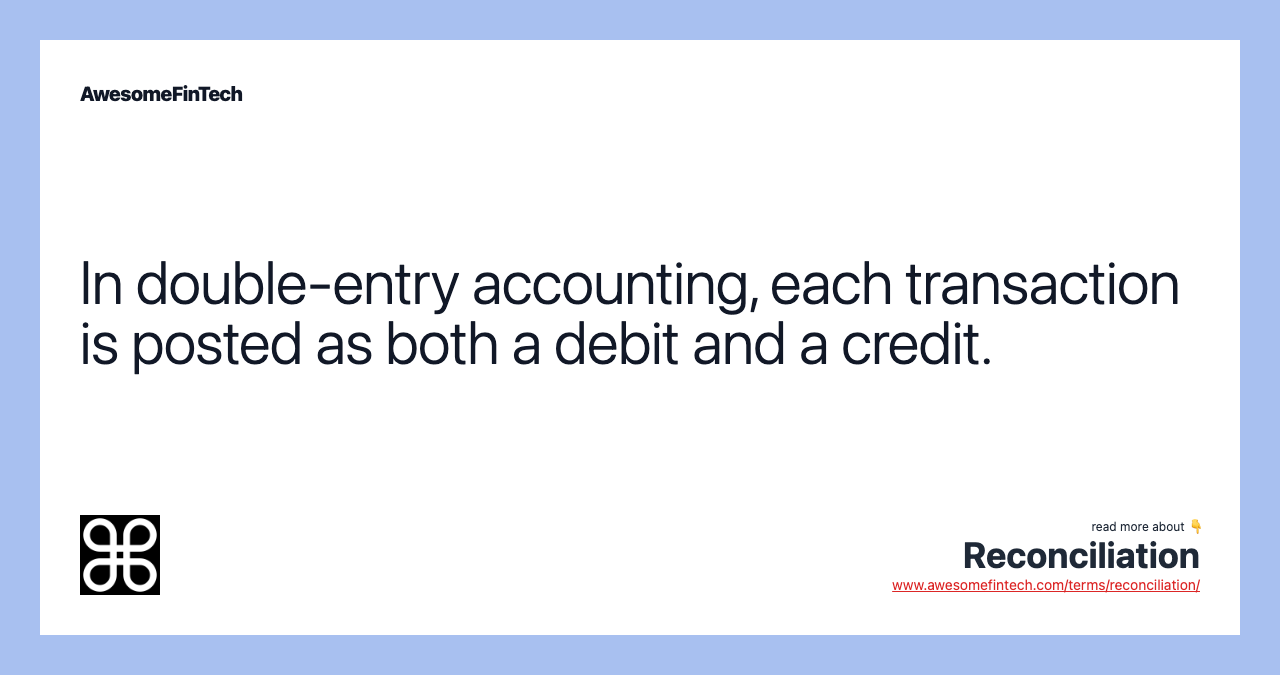 Double-entry accounting is a useful way of reconciling accounts that helps to catch errors on either side of the entry. In double-entry accounting — which is commonly used by companies — every financial transaction is posted in two accounts, the credit account, and the debit account.