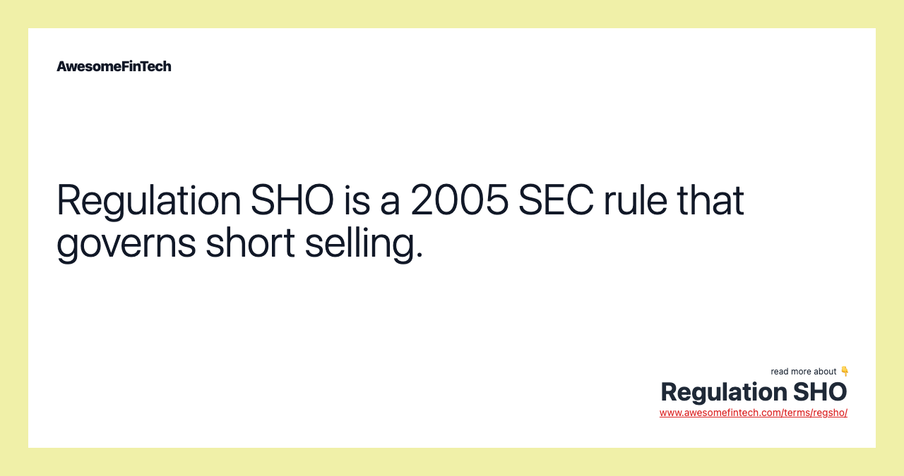 Regulation SHO is a set of rules from the Securities and Exchange Commission (SEC) implemented in 2005 that governs short sale practices. Regulation SHO established "locate" and "close-out" requirements aimed at curtailing naked short selling and other practices. Naked shorting takes place when investors sell short shares that they do not possess and have not confirmed their ability to possess.
