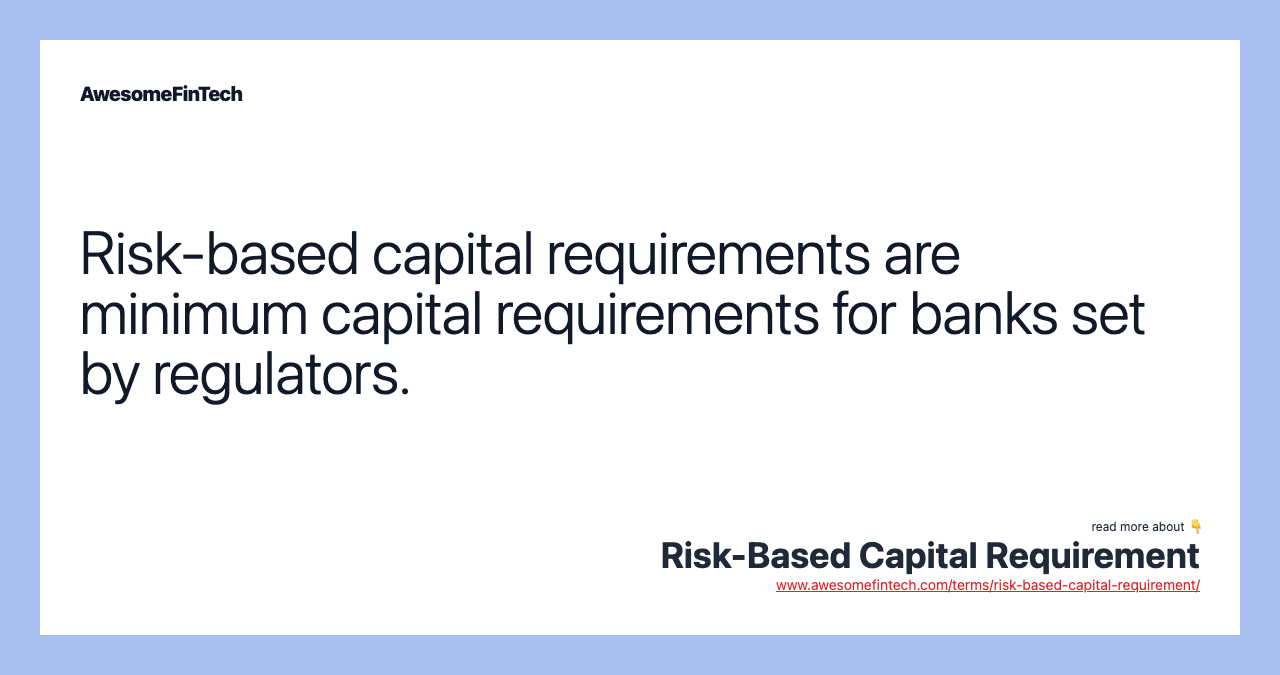 Risk-based capital requirement refers to a rule that establishes minimum regulatory capital for financial institutions. Risk-based capital requirements exist to protect financial firms, their investors, their clients, and the economy as a whole. These requirements ensure that each financial institution has enough capital on hand to sustain operating losses while maintaining a safe and efficient market.