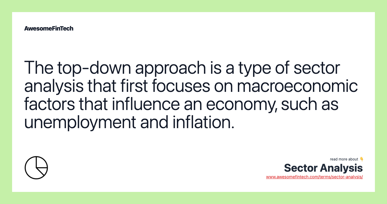 Investors who employ a top-down approach to sector analysis focus first on macroeconomic conditions in their search for companies that have the potential to outperform. They start by looking at those macroeconomic factors that have the biggest impact on the largest part of the population and the economy, such as unemployment rates, economic outputs, and inflation.