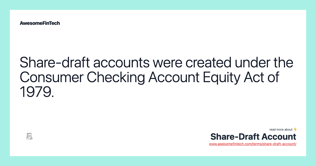 A share-draft account refers to a credit union account that is similar to a bank's checking account. Share-draft accounts were created under the Consumer Checking Account Equity Act of 1979.