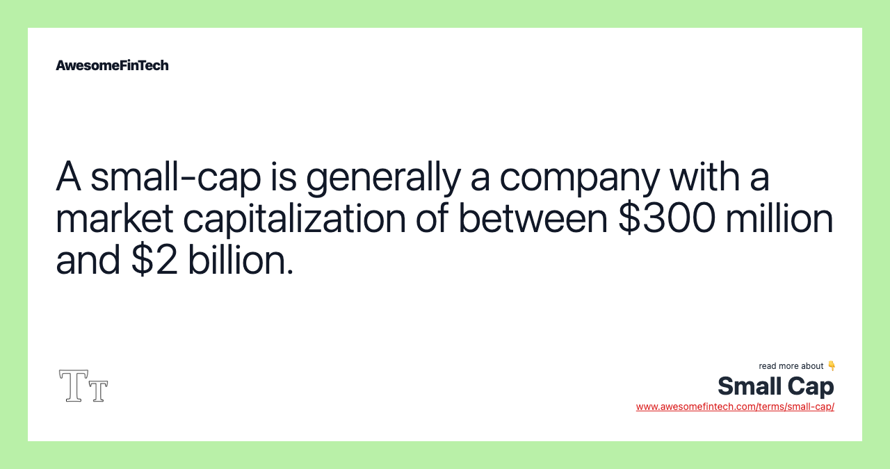 The term small-cap describes companies with a relatively small market capitalization. A company's market capitalization is the market value of its outstanding shares. The definition for small-cap varies, but generally means a company with $300 million to $2 billion in market capitalization.