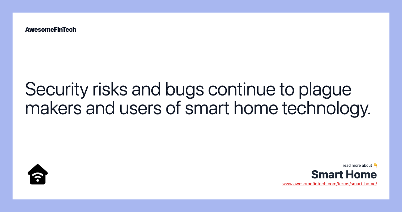 While the smart home offers convenience and cost savings, there are still challenges. Security risks and bugs continue to plague makers and users of the technology. Adept hackers, for example, can gain access to a smart home's internet-enabled appliances. In October 2016, a botnet called Mirai infiltrated interconnected devices of DVRs, cameras, and routers to bring down a host of major websites through a denial of service attack, also known as a DDoS attack.
