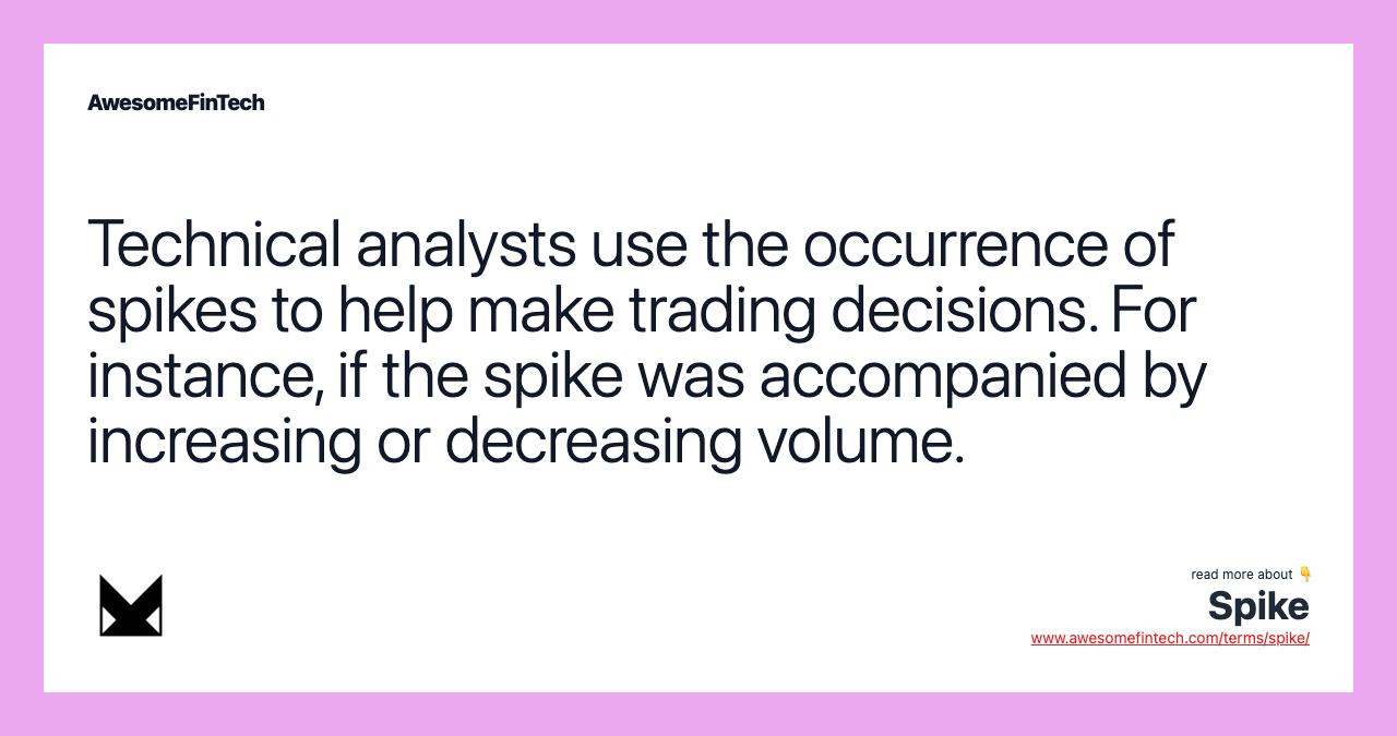 The concept of a spike in a stock’s price is used in technical stock analysis. Technical analysis is the study of trends in stock price changes and in trading volume, which is the number of shares traded in a day or month. Portfolio managers study these historical trends to predict the behavior of stock prices in the future.