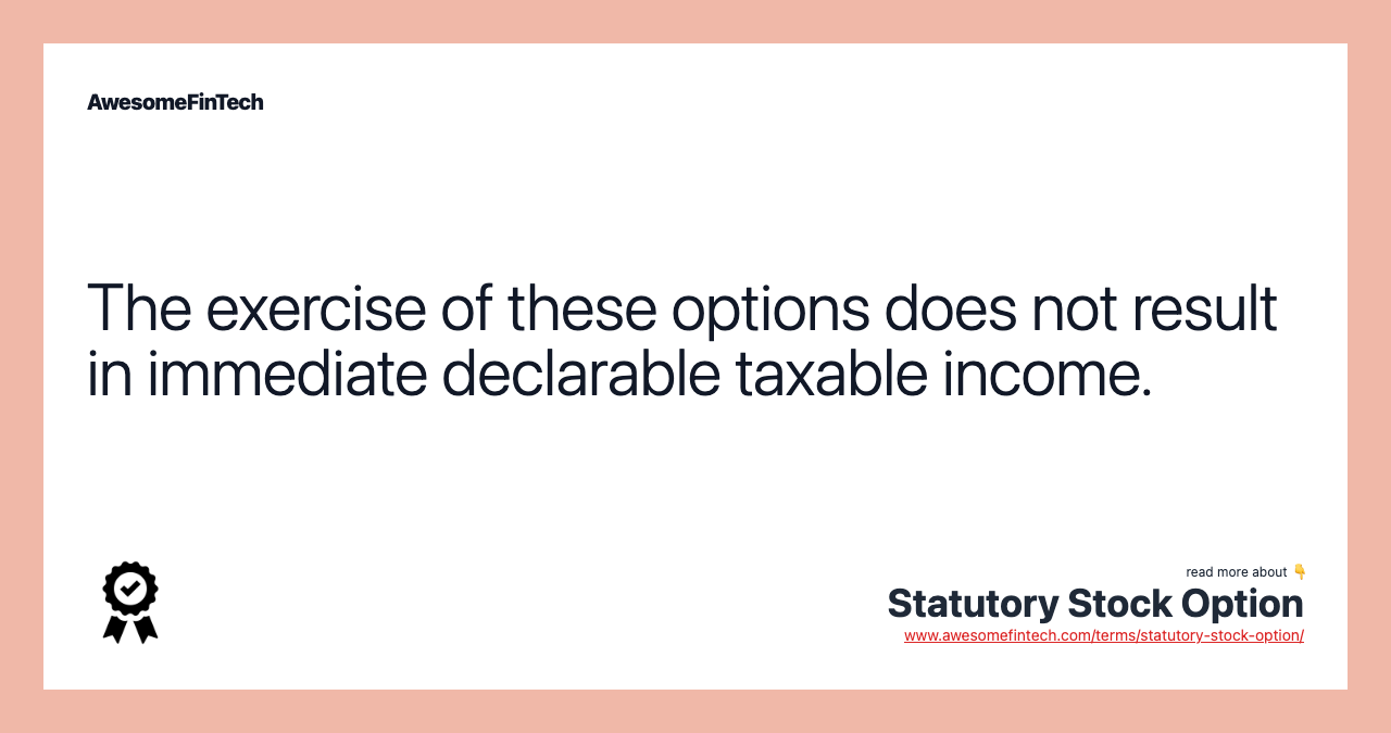 Table of Contents What Is a Statutory Stock Option? How Statutory Stock Options Work Special Considerations Frequently Asked Questions Unlike statutory stock options, nonstatutory stock options are not part of an employee stock purchase plan or incentive stock option plan. Also known as non-qualified stock options, nonstatutory stock options have different tax rules than statutory stock options. Nonstatutory stock options are a type of stock option granted by an employer to an employee that allows the employee to buy the company's stock at a preset price at a later date. Despite that fact, employees who receive a statutory stock option may fall under the alternative minimum tax for the year in which their statutory stock options are exercised.