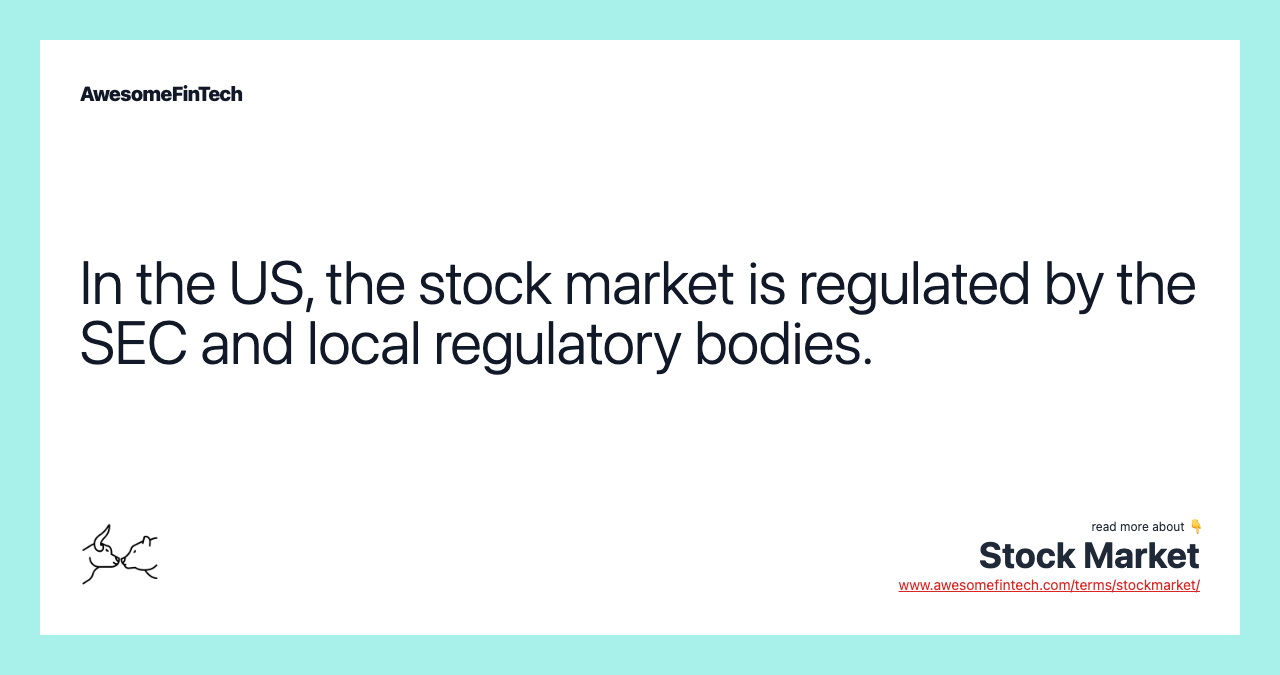 A local financial regulator or competent monetary authority or institute is assigned the task of regulating the stock market of a country. The Securities and Exchange Commission (SEC) is the regulatory body charged with overseeing the U.S. stock markets. The SEC is a federal agency that works independently of the government and political pressure. The mission of the SEC is stated as: "to protect investors, maintain fair, orderly, and efficient markets, and facilitate capital formation."