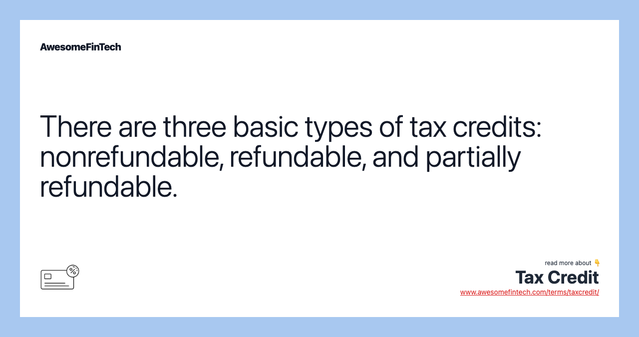Table of Contents What Is a Tax Credit? If one taxpayer claimed a child, based on 2018/19 returns, but another taxpayer can legitimately claim that child on the 2020 tax return, the second taxpayer will get a $500 tax credit when filing a 2020 tax return and the person who received it based on 2018/19 returns will not have to pay it back. However, a credit would reduce the tax liability by the full $1. Nonrefundable tax credits are items directly deducted from the tax liability until the tax due equals $0. As of the 2020 tax year, specific examples of nonrefundable tax credits include credits for adoption, the Lifetime Learning Credit, the Child and Dependent Care Credit, the Saver's Tax Credit for funding retirement accounts, and the mortgage interest credit, which is designed to help people with lower incomes afford homeownership. If a taxpayer reduces their tax liability to $0 before using the entire portion of the $2,500 tax deduction, the remainder may be taken as a refundable credit up to the lesser of 40% of the remaining credit or $1,000. In 2020, as a result of the coronavirus pandemic and Coronavirus Aid, Relief, and Economic Security (CARES) Act stimulus bill, taxpayers received