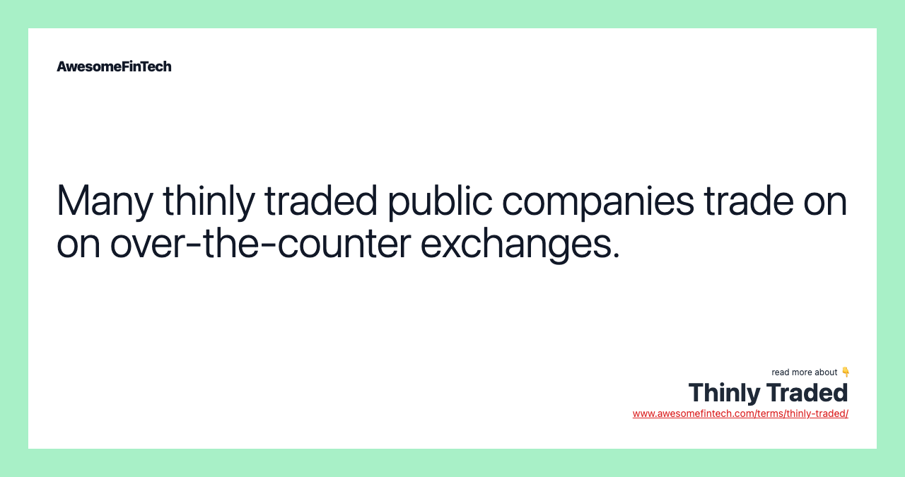 Most thinly traded securities exist outside of national stock exchanges. For example, many public companies listed on over-the-counter (OTC) exchanges are thinly traded since relatively low dollar volumes are traded each day. The lack of ready buyers and sellers usually leads to large disparities between the ask price and bid price.