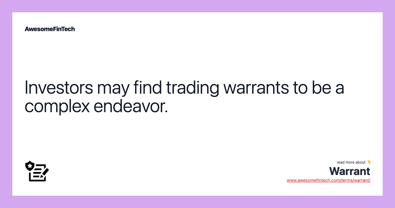 A naked warrant allows the holder to buy or sell an underlying security, but unlike a normal warrant, is not attached to a bond or preferred stock. read more